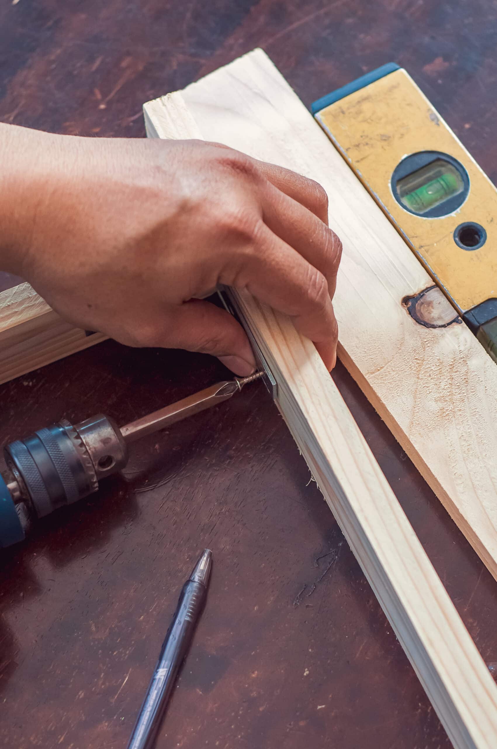 Woodworking,With,A,Drill,To,Screw,Angle,Bracket,In,A - Lee's Hardwood Floors
